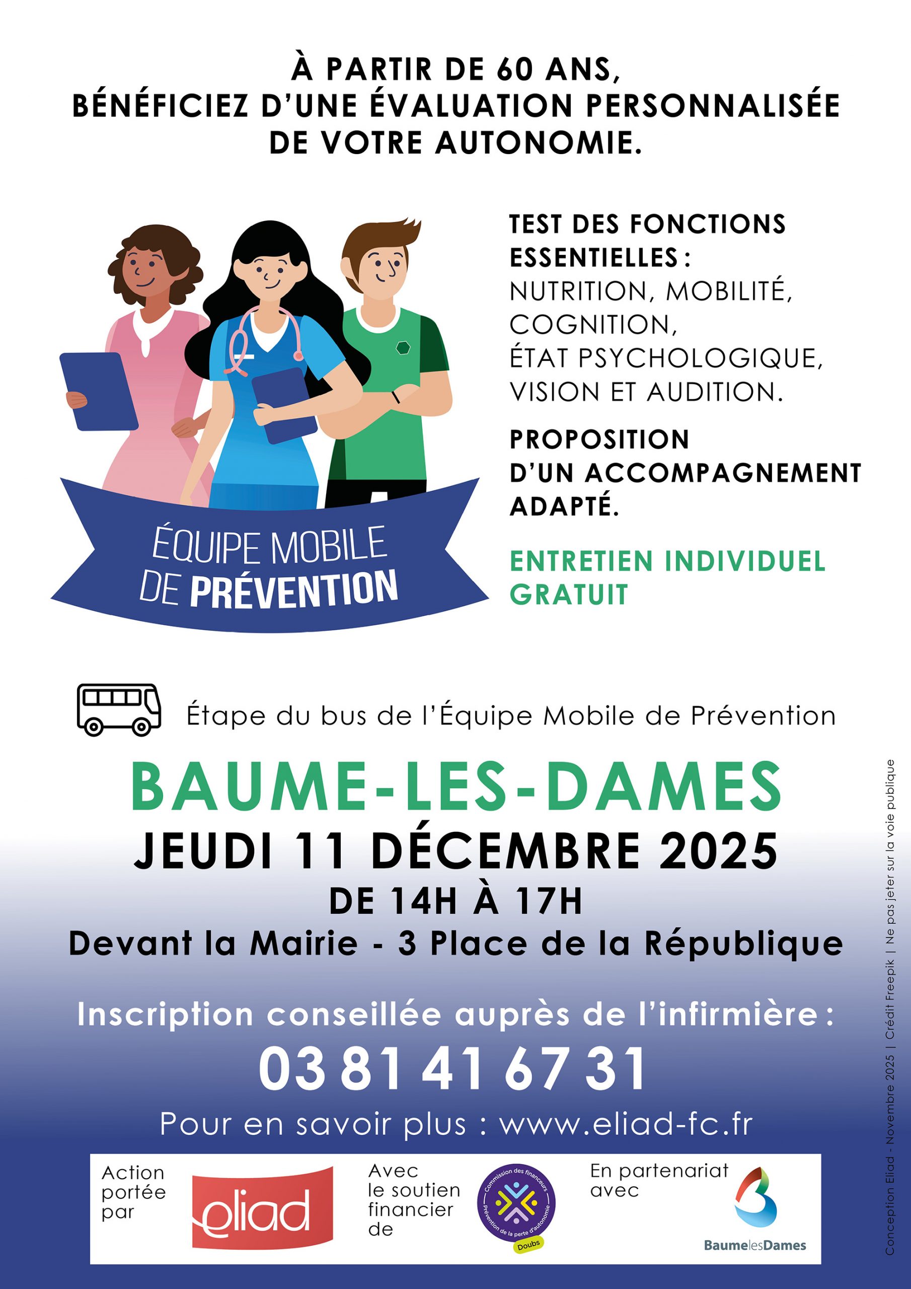Ce nouveau dispositif de prévention santé, porté par une équipe de professionnels autour d’une infirmière, bénéficie du soutien financier de la Commission des Financeurs du Doubs.